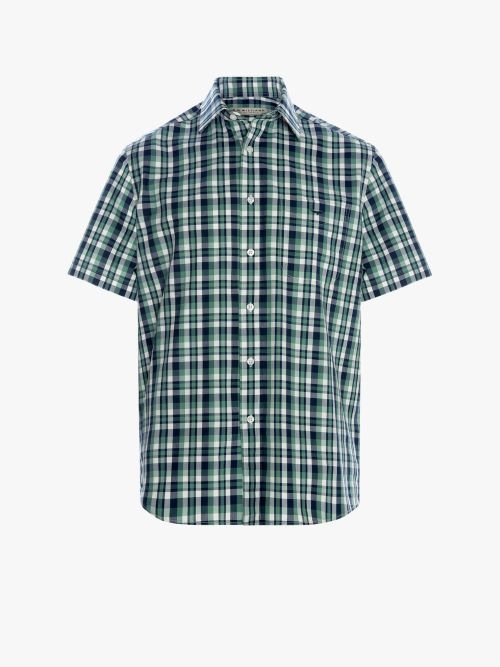 Constructed in a medium check on a poplin base, the Hervey Shirt is a is a short sleeve casual shirt featuring a single pocket, RMW logo buttons and signature Longhorn embroidery on pocket, side back tucks along yoke for added movement through shoulder