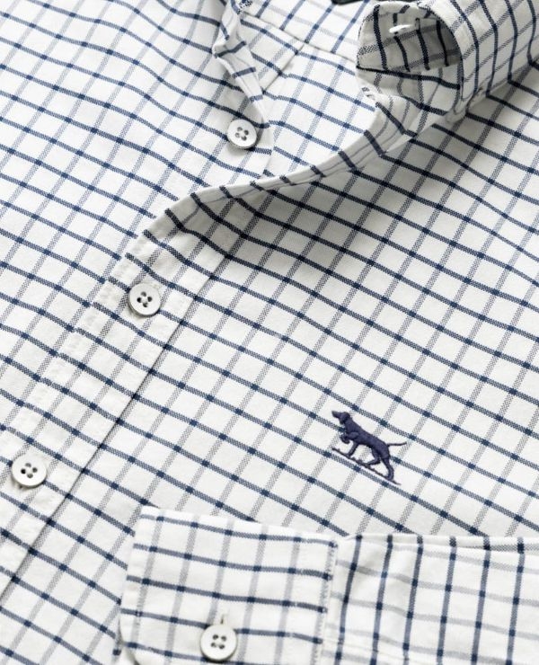 This long-sleeve oxford shirt features a classic and adaptable grid check, which will be a smart choice whether it's to the office or a night out on the town. The fabric was expertly crafted from the famed Albini mill in Northern Italy and features the worlds best cotton yarns.